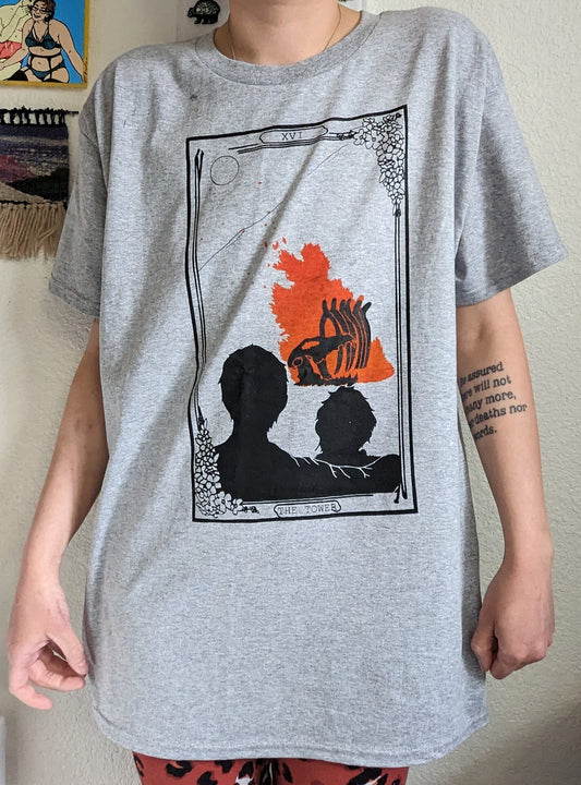 Seconds High Desert Tarot: The Tower Rainbow Rolled T-Shirt