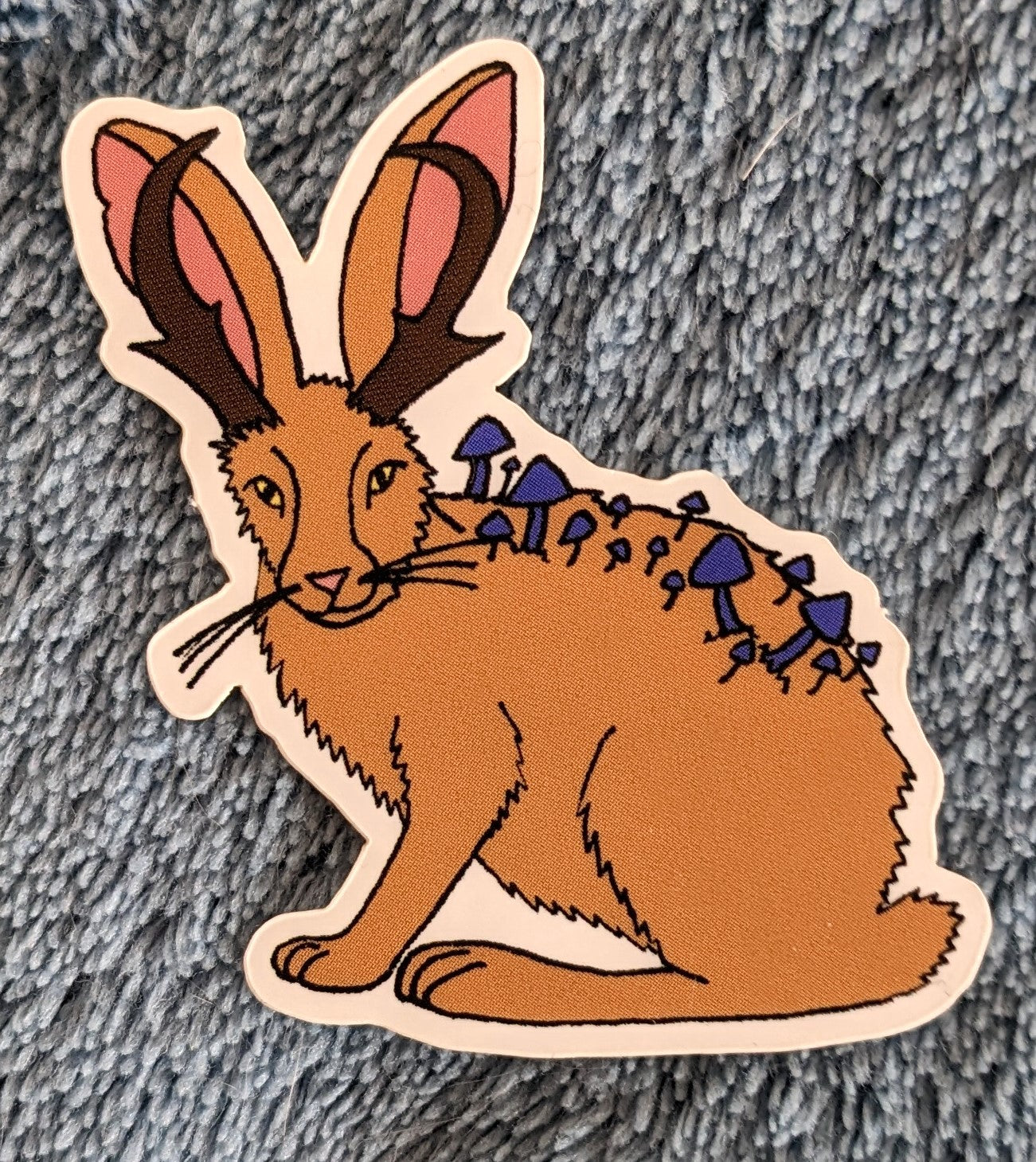 These stickers feature my illustration of a jackalope with werewere-kokako mushrooms from my 2023 Funguary series. They have been professionally printed on white vinyl.