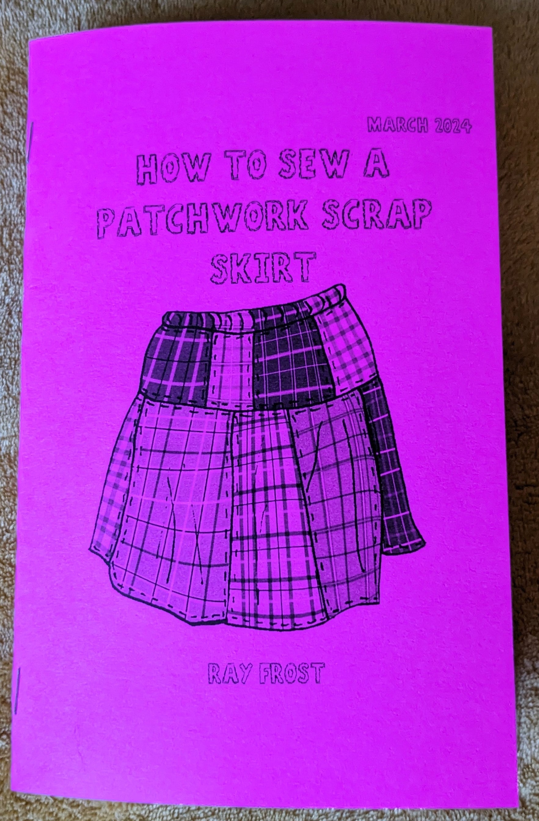 "How to Sew a Patchwork Scrap Skirt" provides step-by-step instructions on how to make a skirt out of fabric scraps in any length and size you desire. This skirt doesn't require pattern pieces and is made based on your body measurements. Zine provides detailed instructions on how to use a simple equation for a perfect custom fit. Beginner friendly project. Written directions with illustrations.