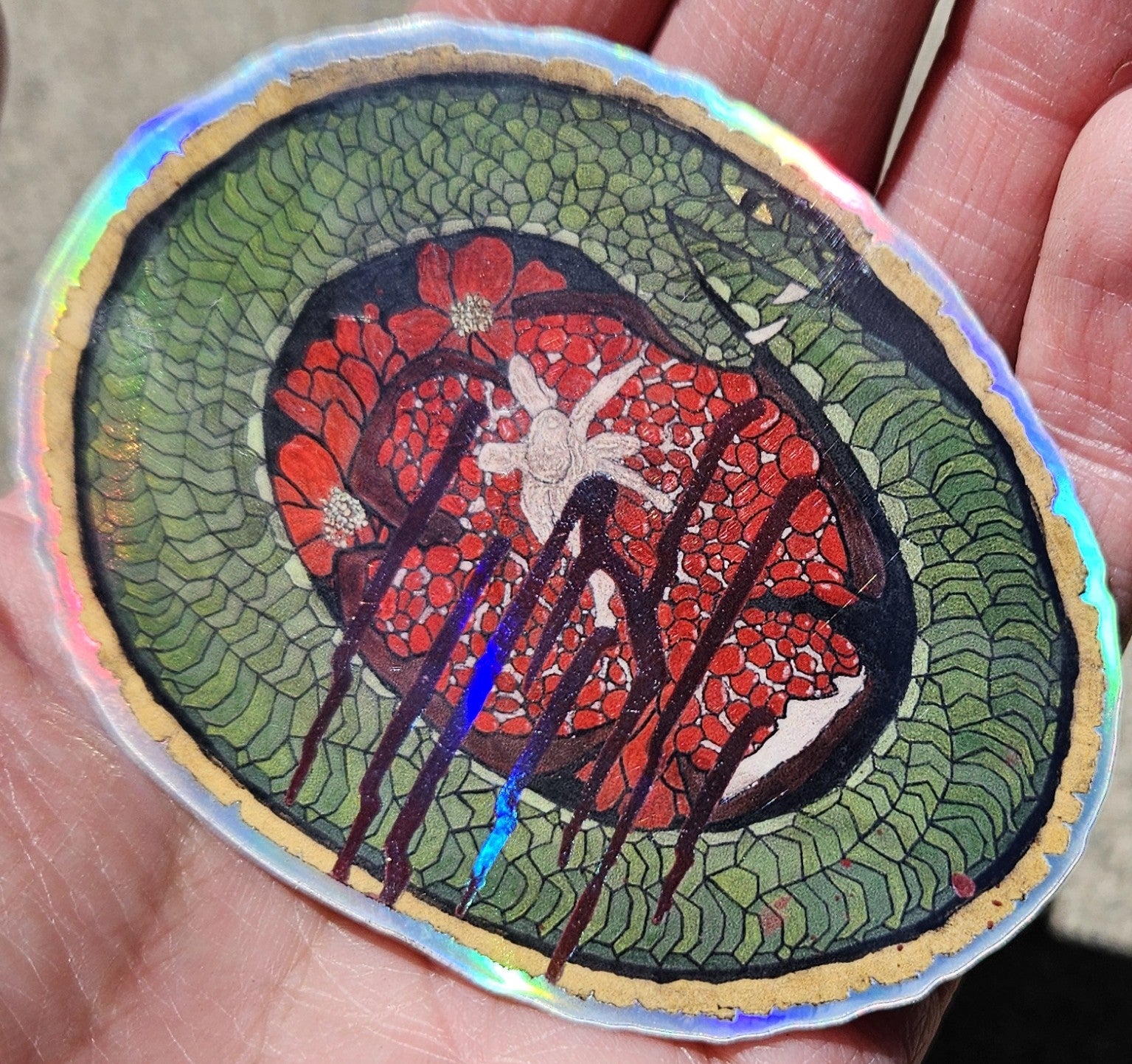 These stickers feature a photo of my recent painting "Wheel of Fortune." They have been professionally printed onto holographic vinyl.