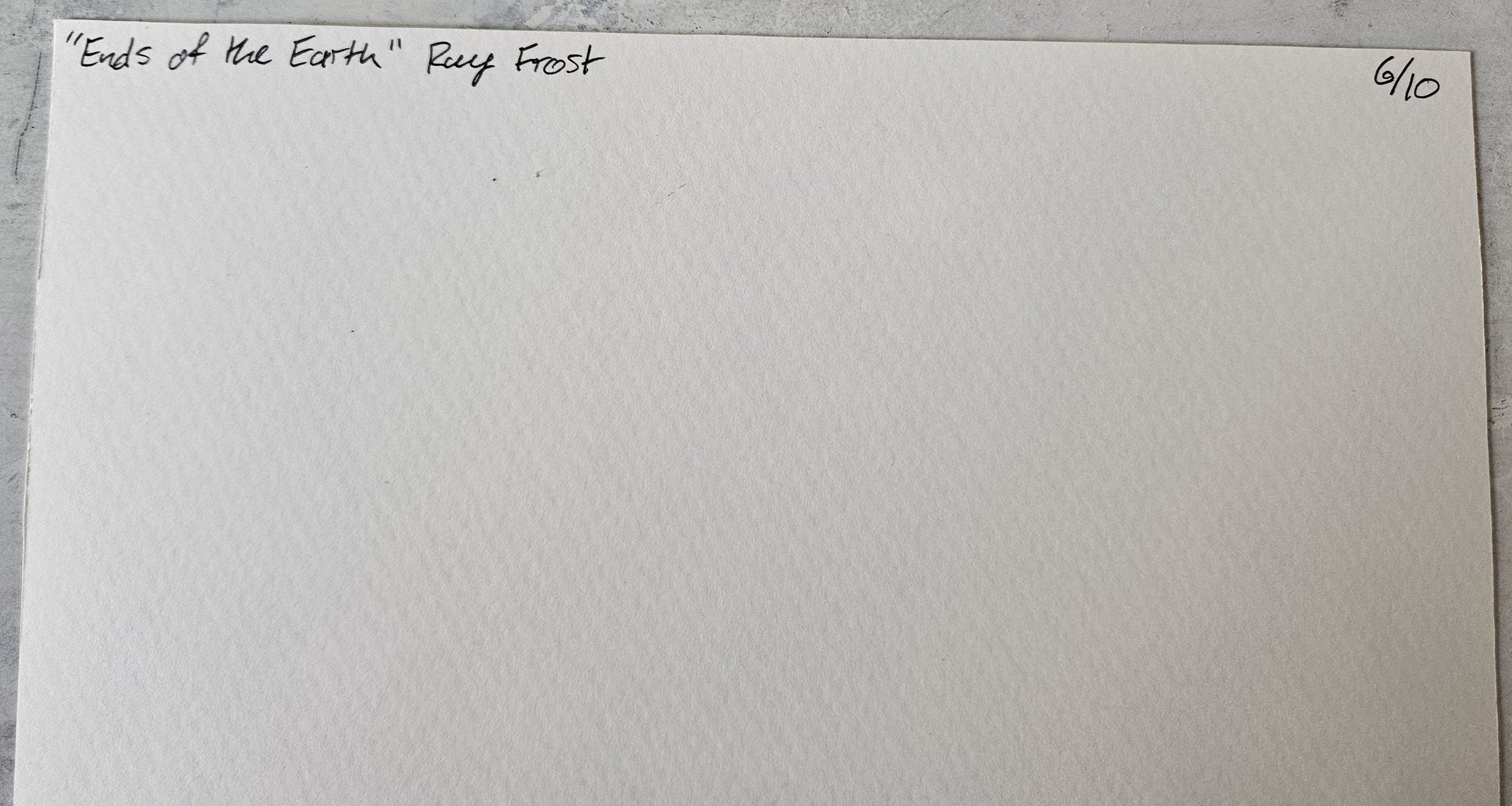 These prints feature my Ends of the Earth illustration and the quote "what good is livin' the life you've been given, if all you do is stay in one place?" from the Lord Huron song "Ends of the Earth." They have been screen printed by hand in two colors with eco-friendly inks onto 140 pound acid free cold press watercolor paper. This is an edition of ten prints, signed, dated and numbered on the back.
