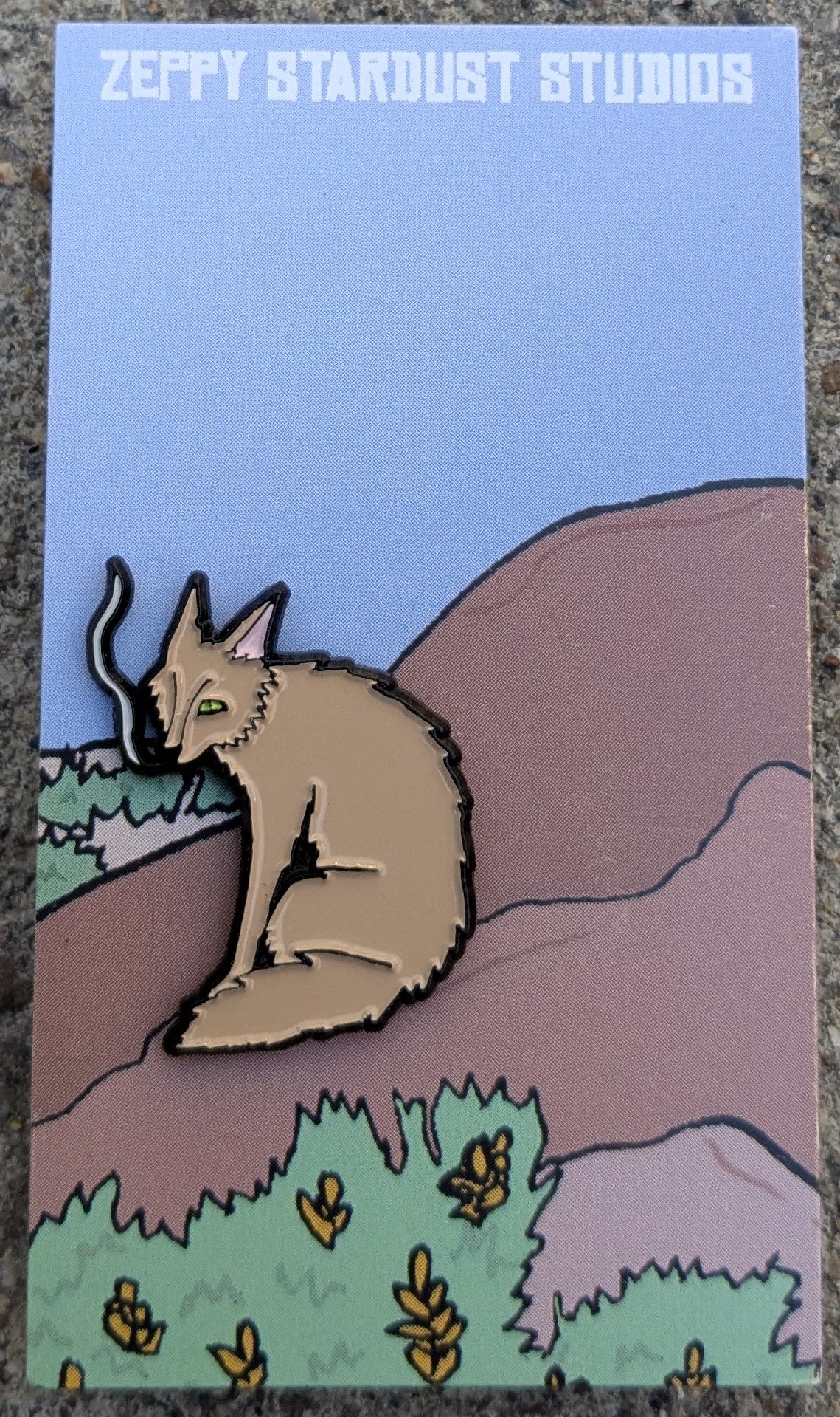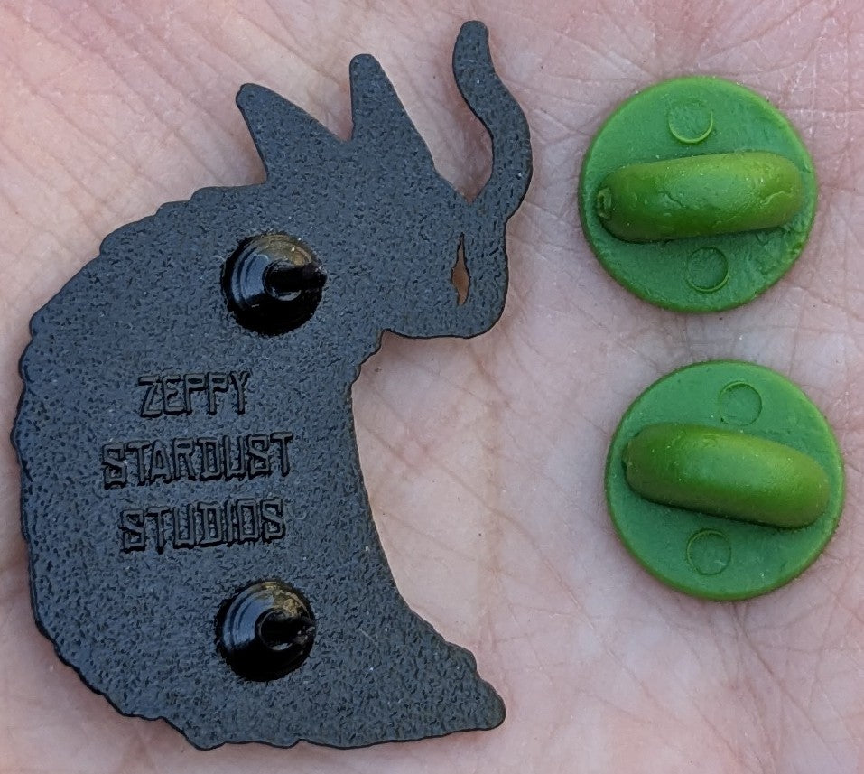 These soft enamel pins feature my favorite image of Coyote Ugly. The pins are black plated nickel with two posts and official Zeppy Stardust Studios back stamp. Each pin comes with green rubber clutches on a backing card depicting the comic panel this image is from.