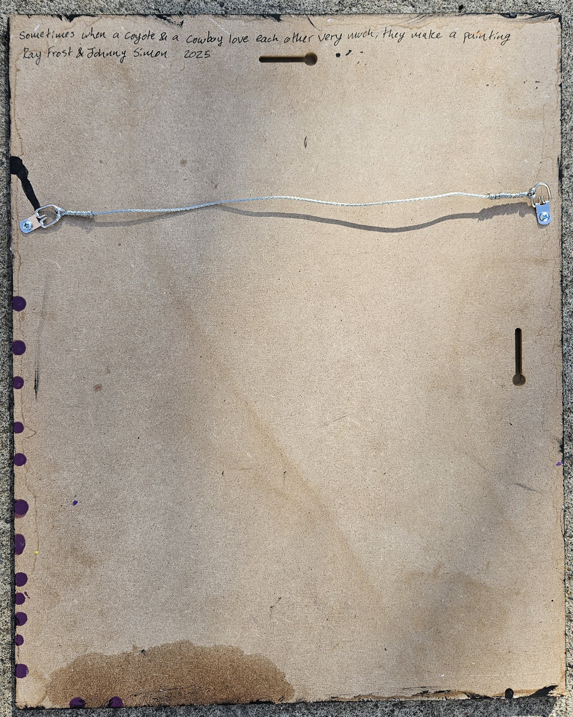 Collaboration with Johnny Simon: "sometimes when a coyote and a cowboy love each other very much, they make a painting" Original Mixed Media on Board